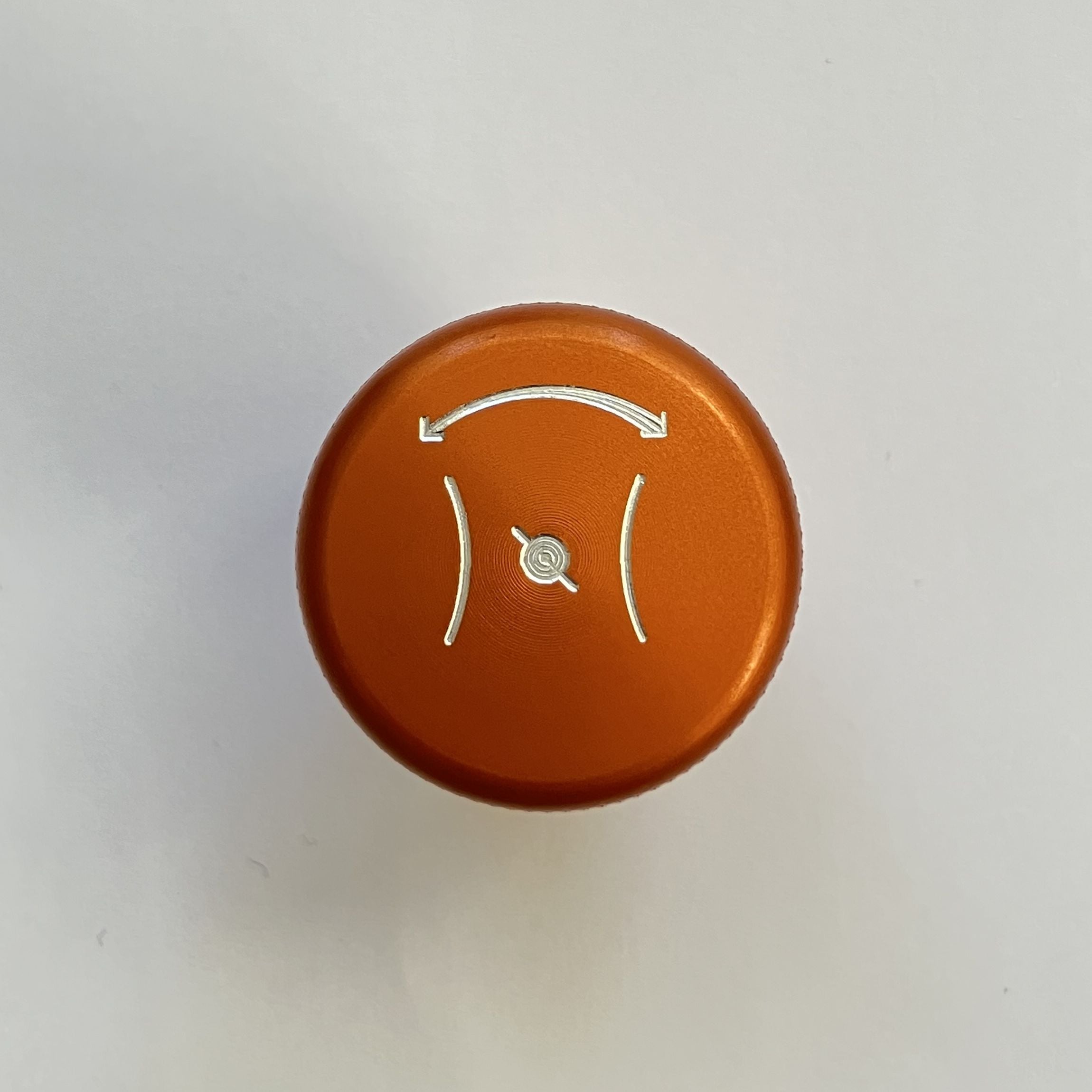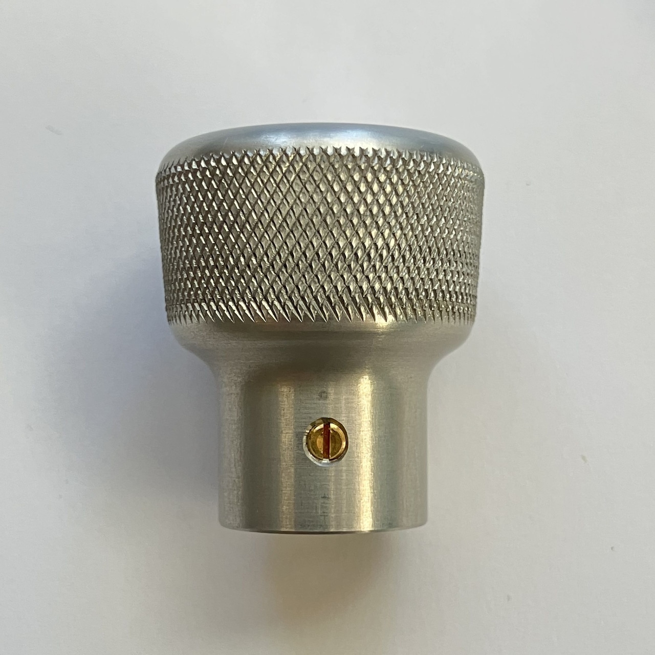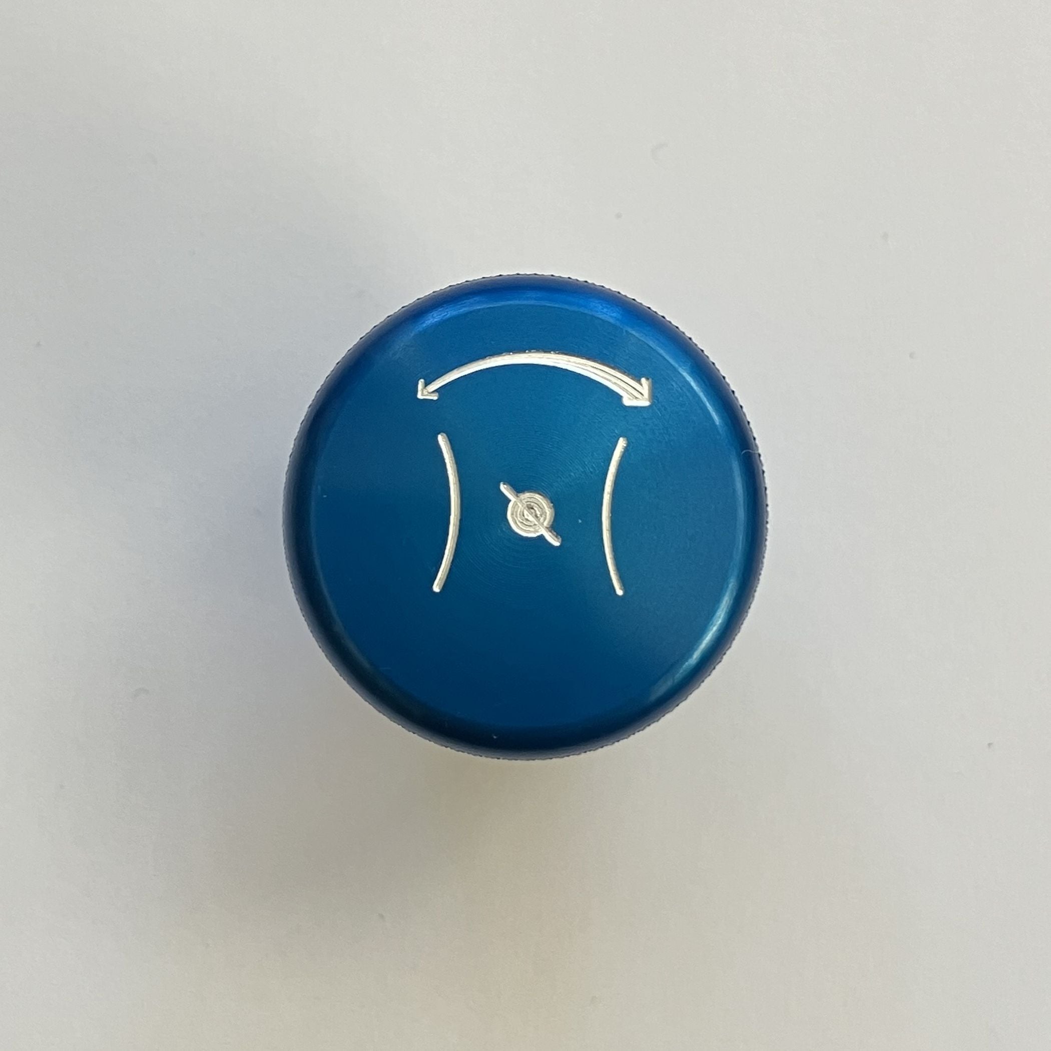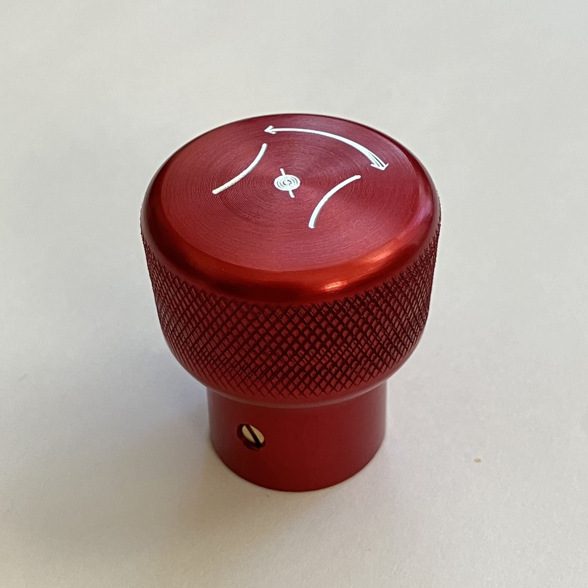 純正のスロットルコントロールノブはプラスチック製ですが、このスロットルコントロールノブはアルミ削り出しで製作しました。サイドにローレット加工を施し滑りにくくなっています。美しいカラーアルマイト仕上げはカスタム部品らしくワンポイントになります。ステアリングハンドルから見えるキラリと光るノブにニヤリとするでしょう。